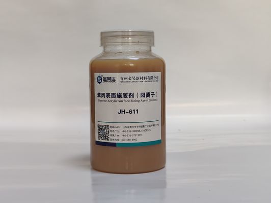 Apresto superficial de JINHAODA JH-611 es apresto de acrílico del estireno catiónico, que se diseña especialmente para el apresto superficial del papel. Tiene las características de la buena compatibilidad, de la viscosidad baja, de la afinidad fuerte, y de la buena resistencia de agua. Puede mejorar la fuerza mojada y la resistencia de agua del papel.