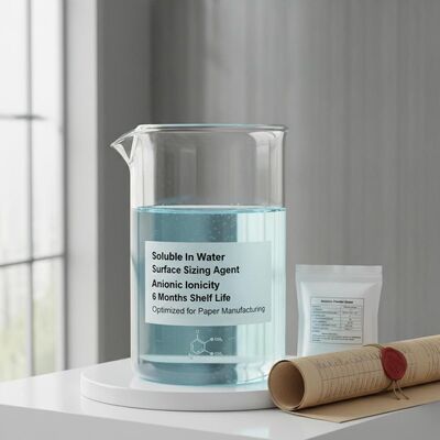 Uno de los atributos clave de este agente de tamaño de superficie es su naturaleza iónica.que facilita la unión fuerte con componentes catiónicos comúnmente encontrados en papel y fibras textilesEsta característica iónica garantiza que el agente de dimensionamiento se adhiera eficazmente a la superficie del sustrato, mejorando así las cualidades mecánicas y ópticas del producto final.La ionización aniónica también contribuye a una mejor dispersión y estabilidad en sistemas acuosos, lo que facilita su aplicación en diversos procesos industriales.